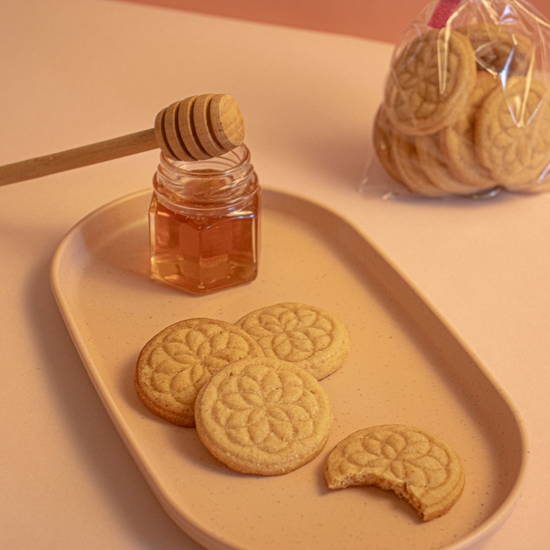 Também produzimos biscoitos de mel, aromáticos e delicados, perfeitos para acompanhar um chá ou cafezinho.