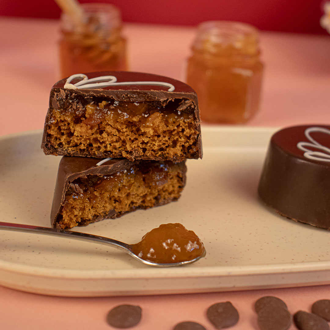 Nosso carro-chefe é o pão de mel, que pode ser simples ou recheado. Com casca fina de chocolate e textura macia, ele combina o sabor delicado do mel com especiarias selecionadas.